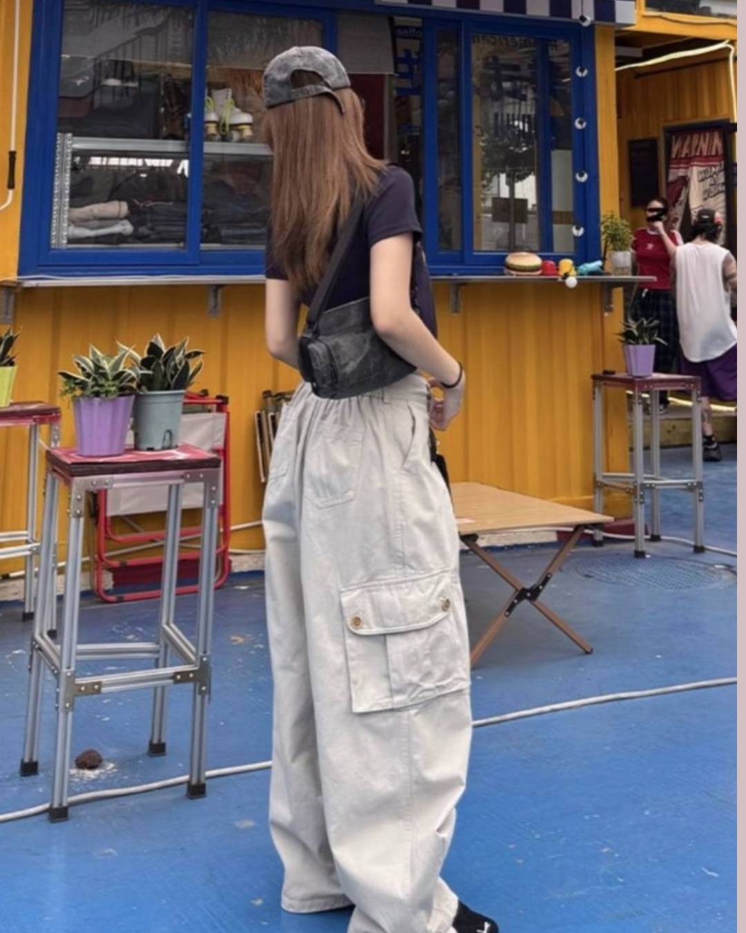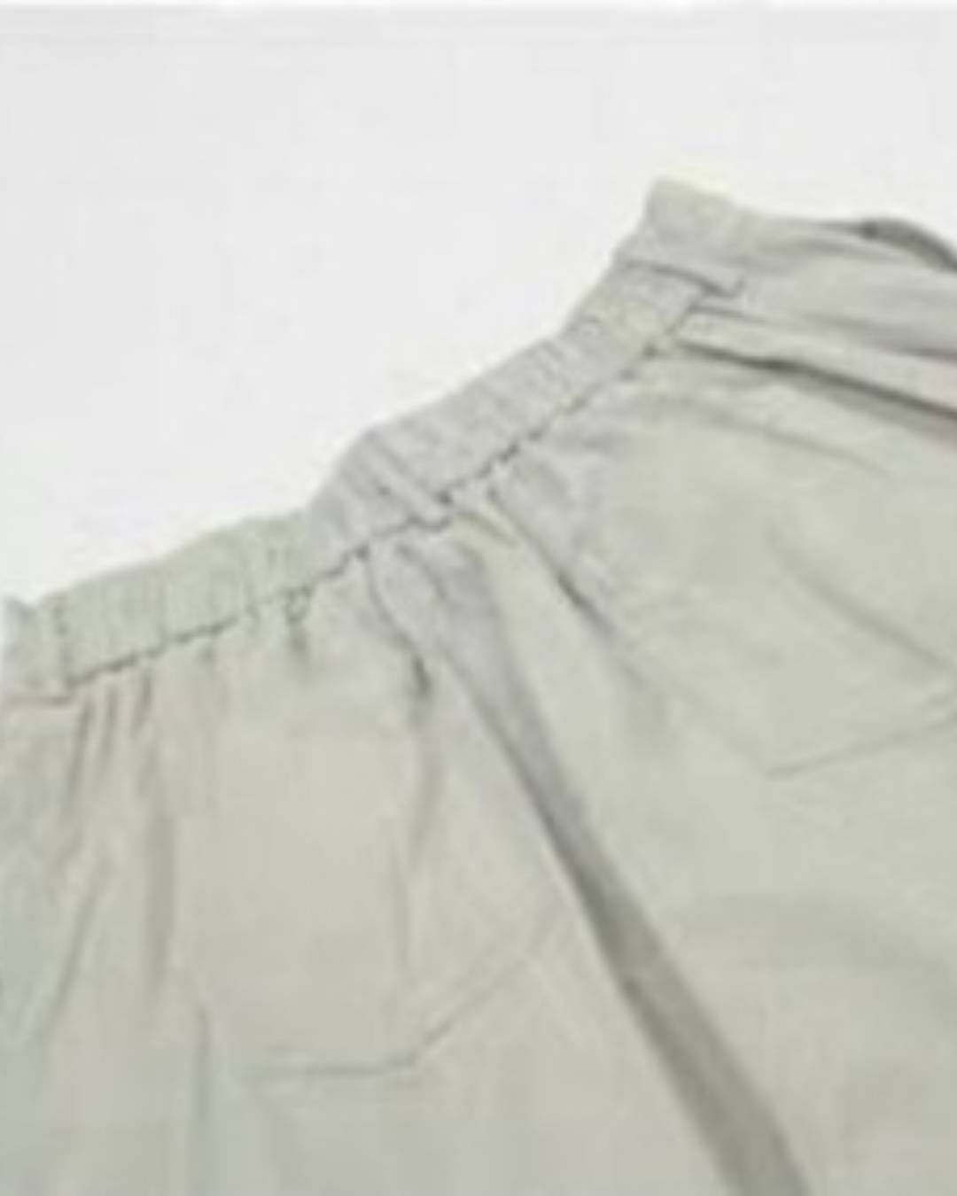 色味と、ポケットデザインなどで少し洗練されたパンツに。