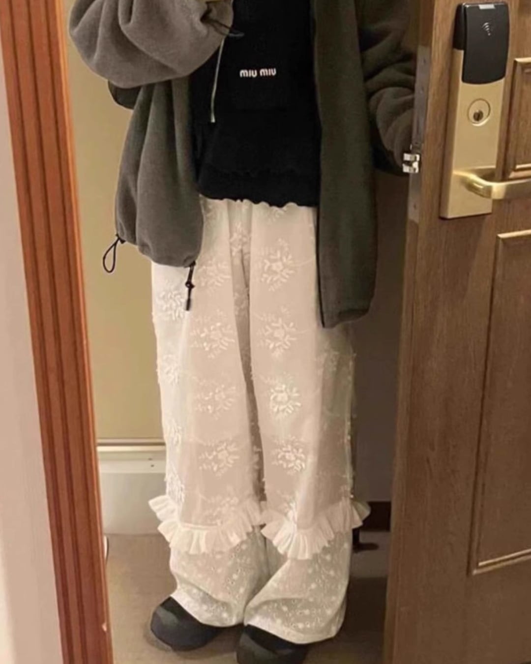 レトロの魅力が詰まったレースデザインが際立つパンツ。どこか懐かしさを感じさせるスタイルが特徴で、日常のコーディネートに華やかさを加えます。デートやお出かけの日にもぴったりの一着!おしゃれなレイヤードスタイルを楽しむのにも最適です。シンプルなトップスとの相性も抜群ですので、さまざまなシーンで活躍します。