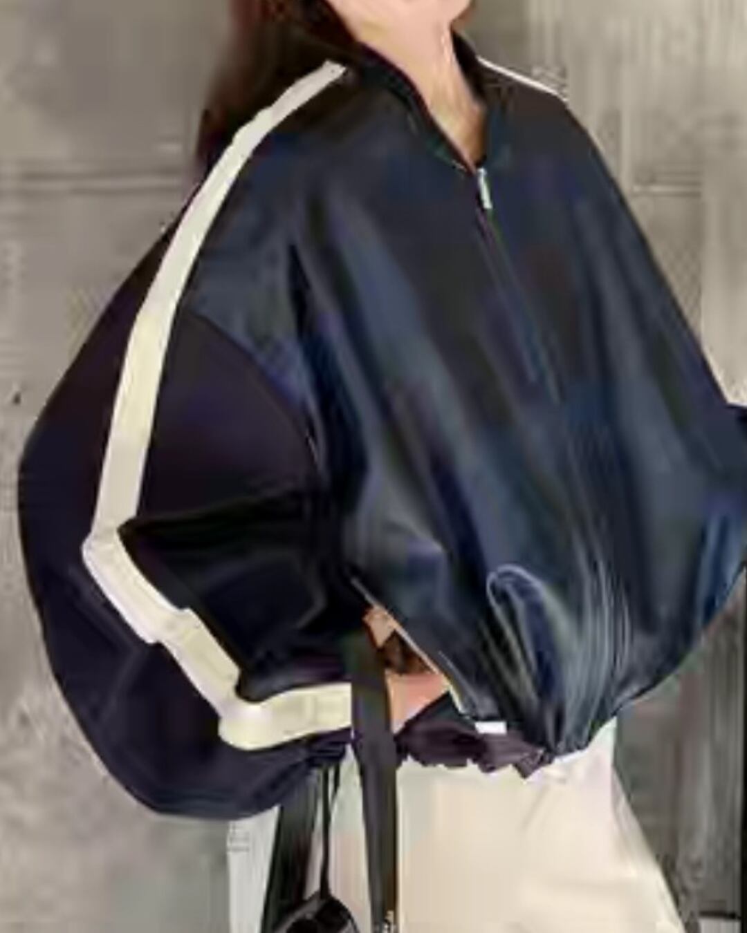 袖の切り替えとラインデザインが個性的なレザーブルゾン。