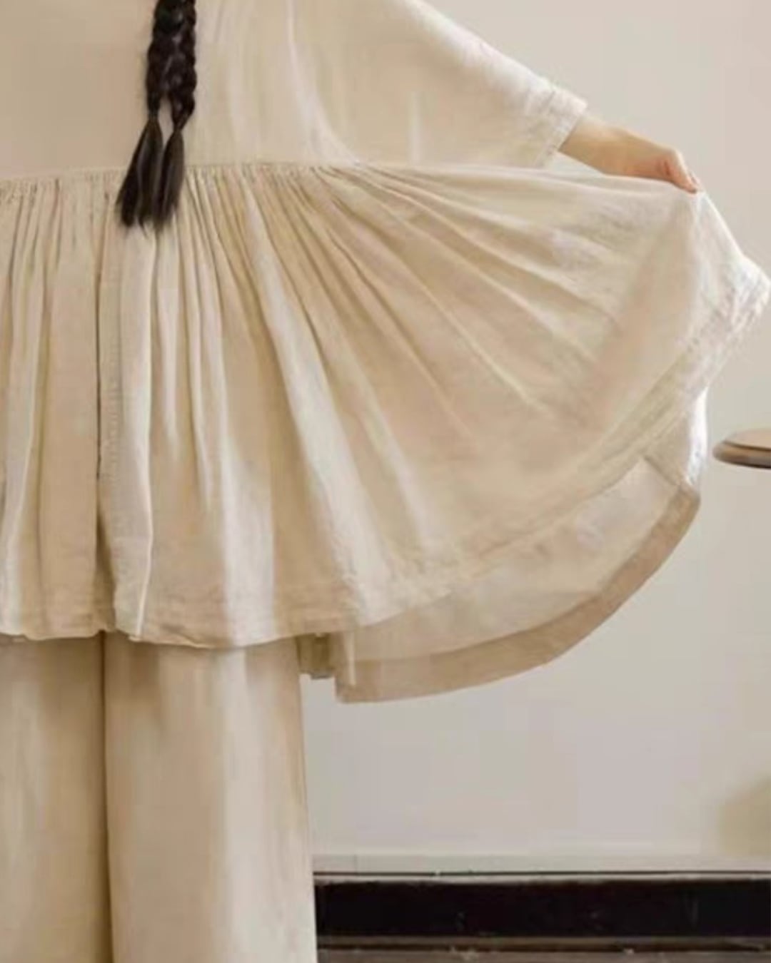 ふんわりとしたシルエットで女性らしさを引き立てます。ギャザーたっぷりで、リラックスした着心地を実現。カジュアルにもエレガントにも着こなせる万能アイテムです!
