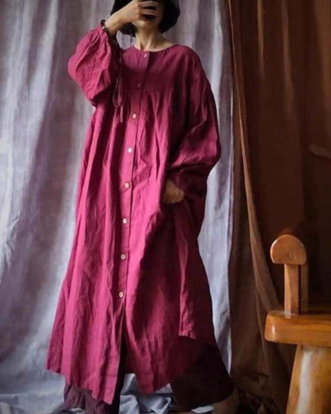 トレンドを意識したワイドシルエットがスタイリッシュな印象を与え、デイリールックから特別なシーンまで幅広く活躍し、着る人を引き立てます。