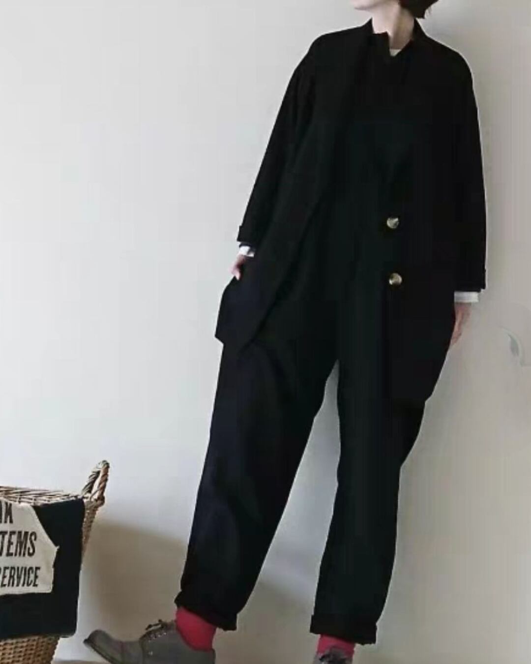 シンプルでありながらも個性的な印象を与え、普段着にもお出かけにも使える万能アイテム。リラックスした着心地も魅力です!