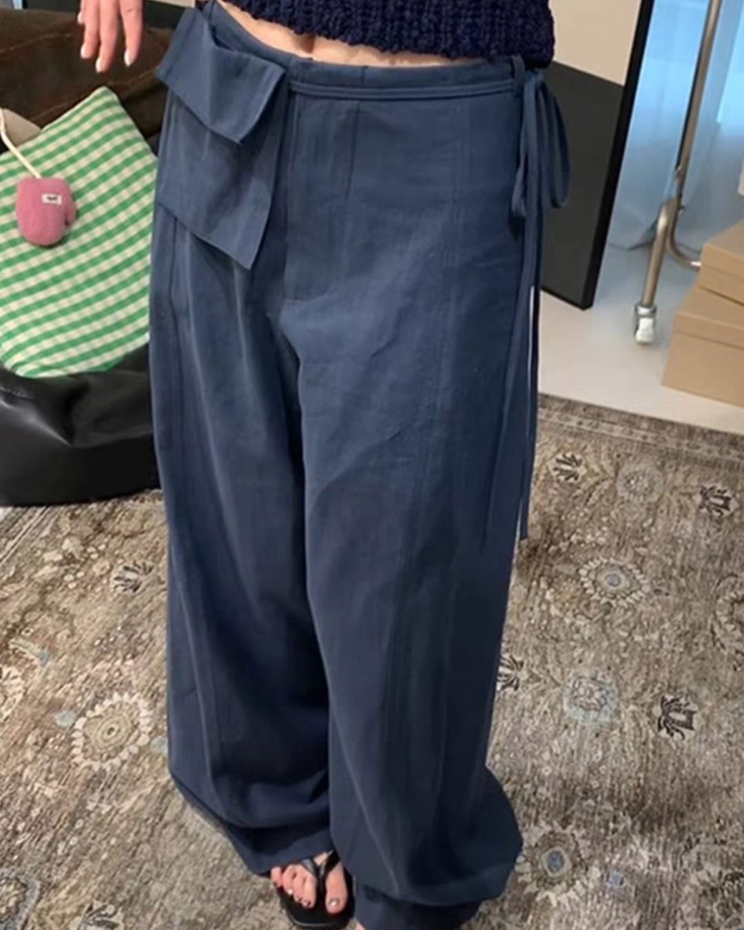 流れるようなドレープ感が特徴のストレートワイドレッグパンツ。軽やかな素材で、ゆったりとしたシルエットが魅力です。カジュアルからビジネスシーンまで幅広く対応できる万能なアイテムです。