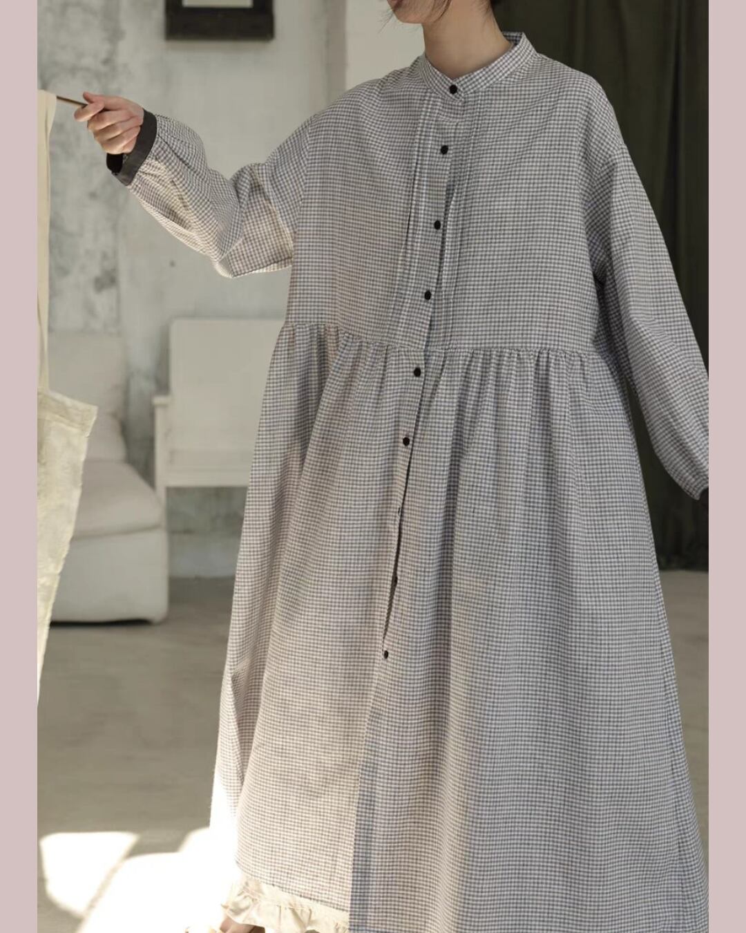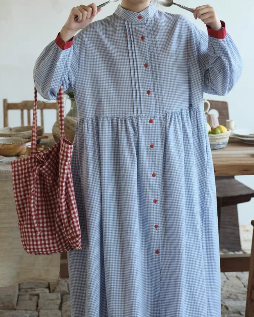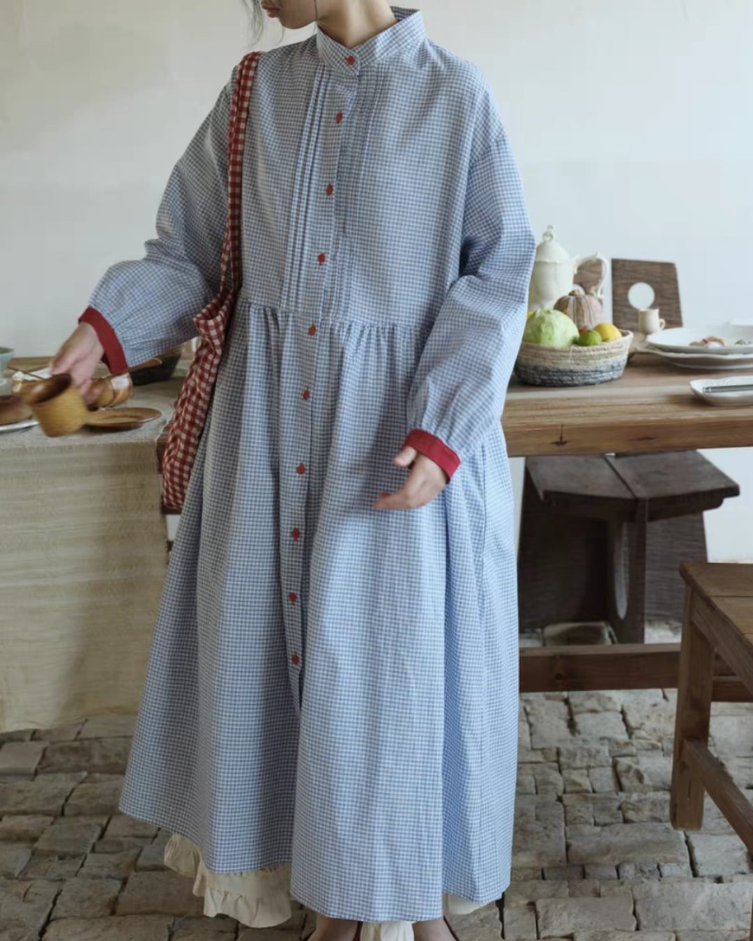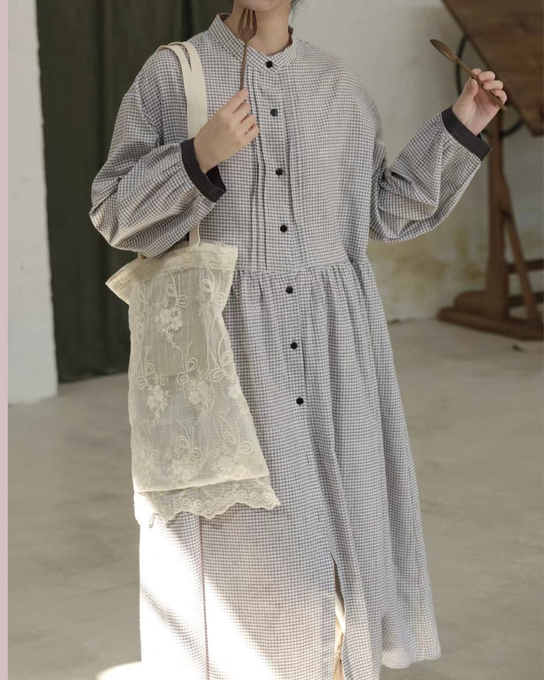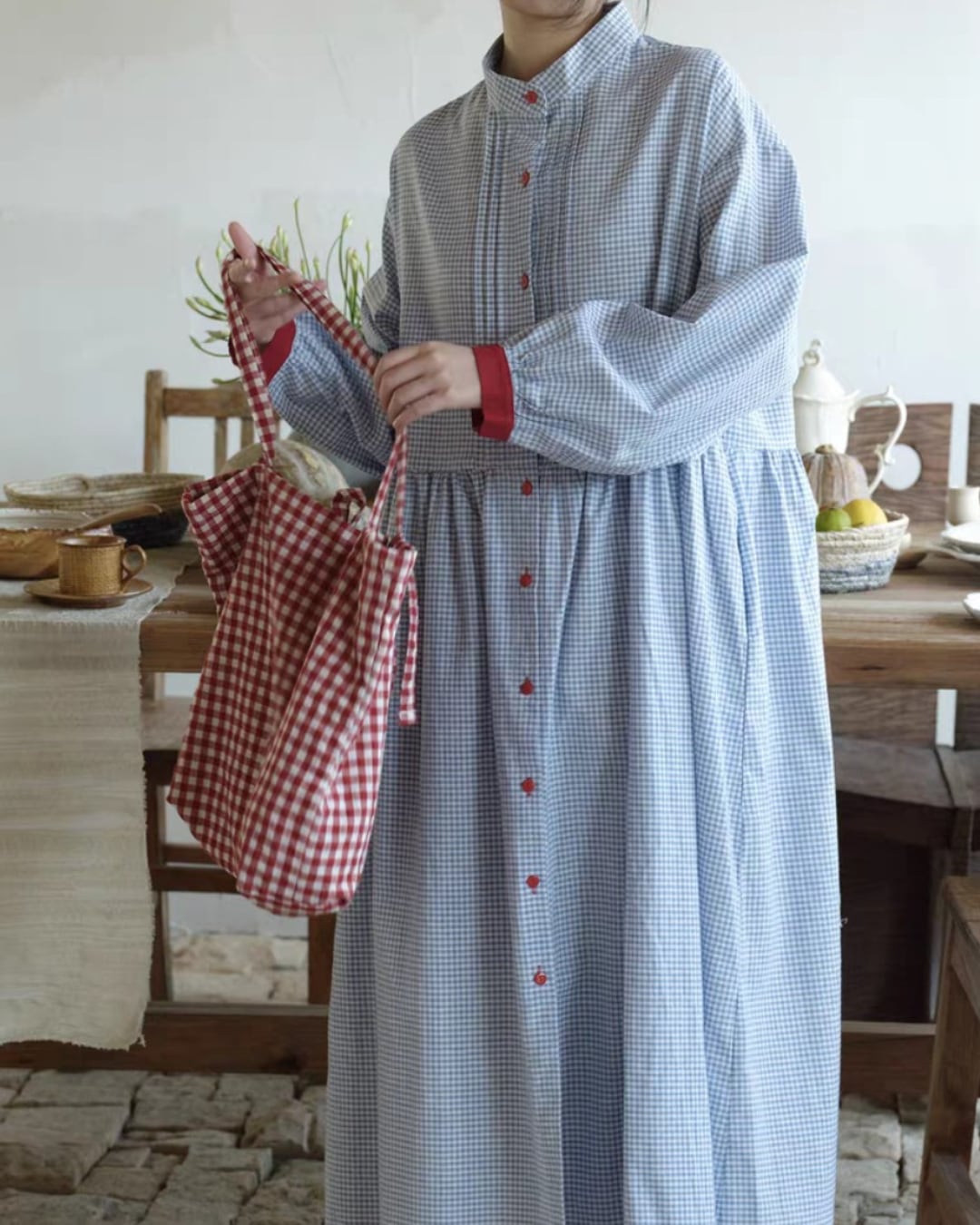 配色使いと小さめチェックが合わせやすく、どんな着こなしにも使えるワンピースとなっています!