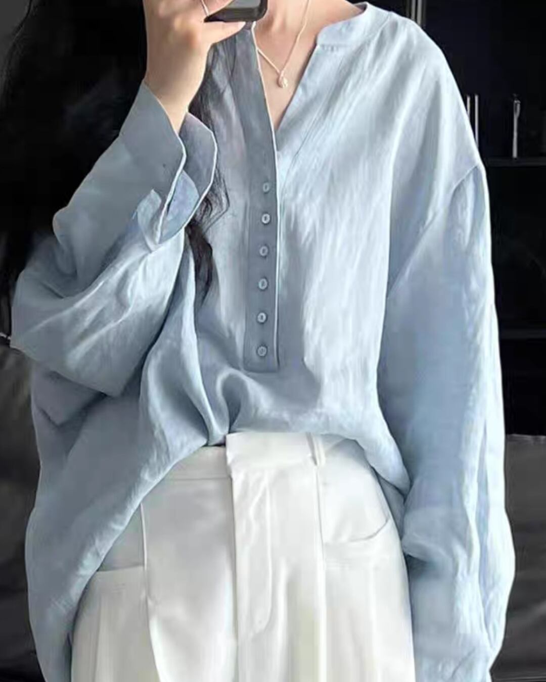シンプルで洗練されたデザインのスタンドカラースキッパーシャツ。普段使いはもちろん、ちょっとしたお出かけにもぴったりなアイテムです!