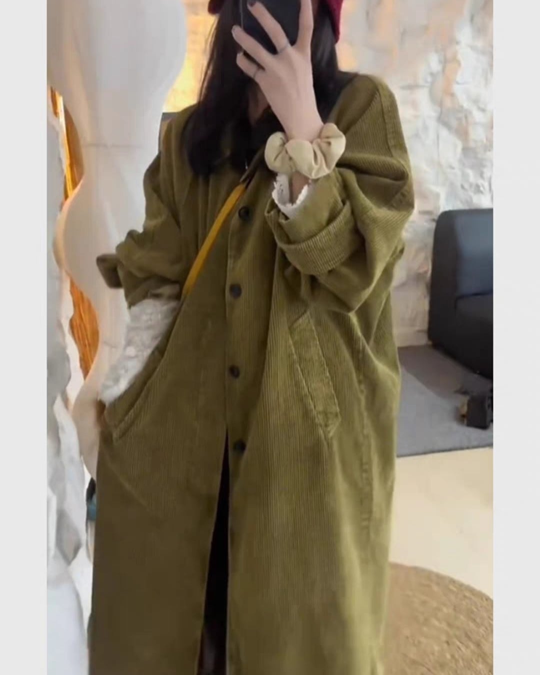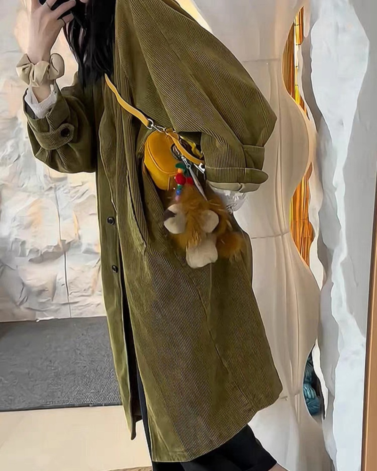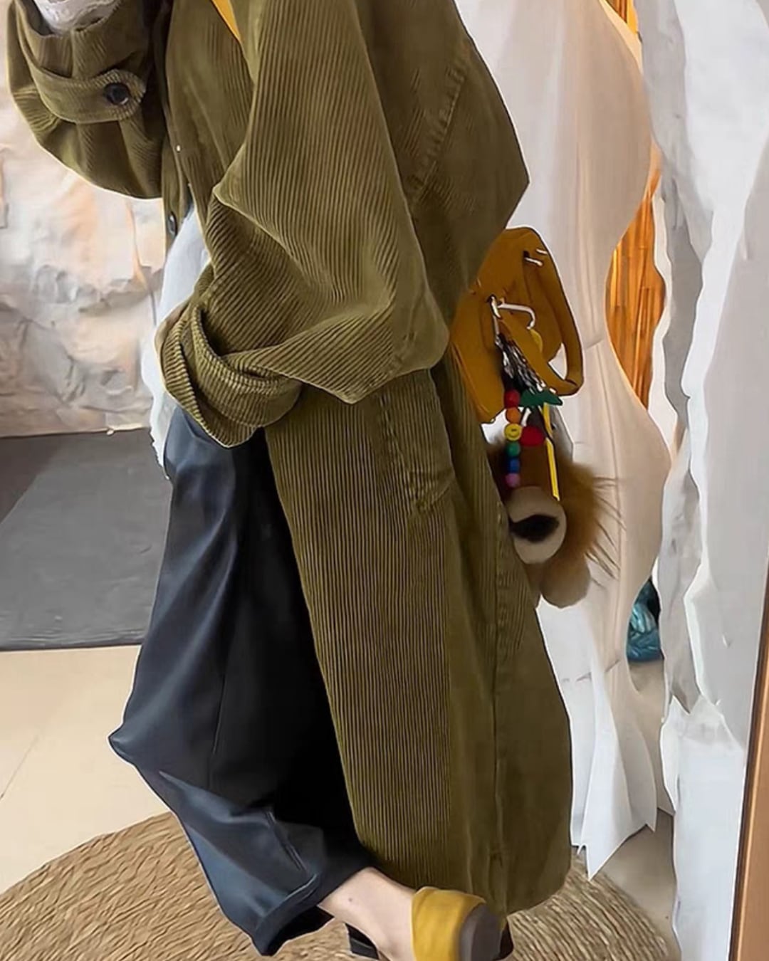 コーデュロイ素材を使用しており、柔らかな肌触りと優れた保温性が魅力。シンプルながらもスタイリッシュなデザインで、カジュアルにもフォーマルにも合わせやすいアイテムです。大人の魅力を引き出す一着をぜひお楽しみください!