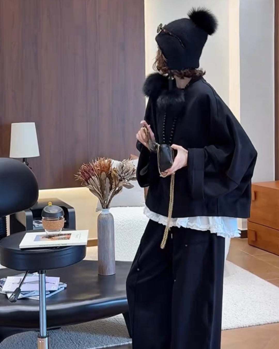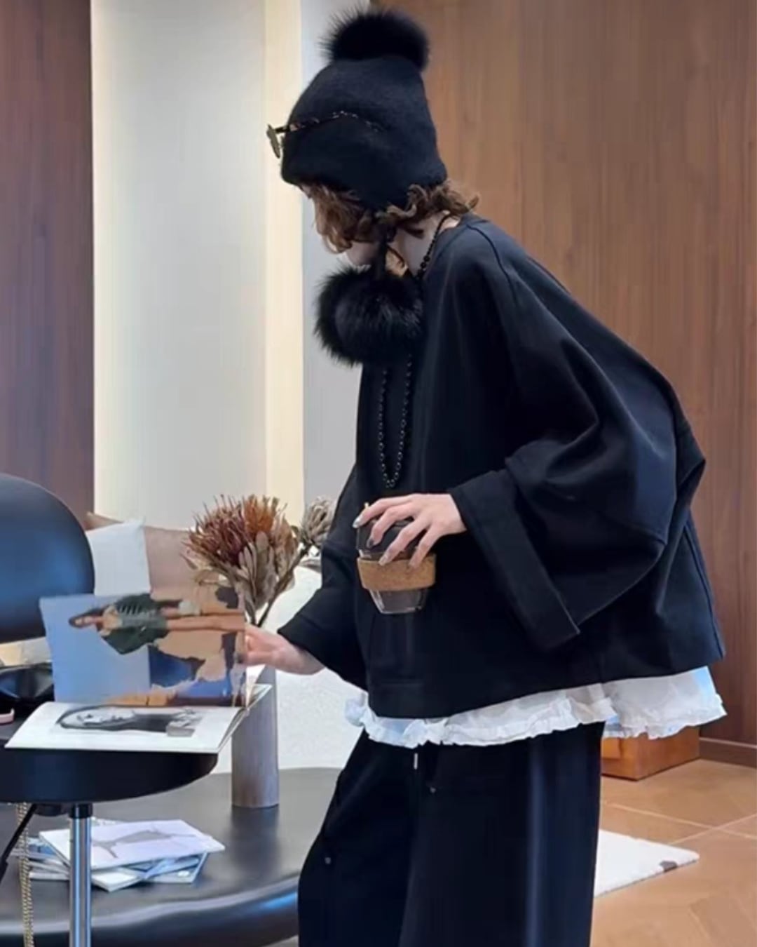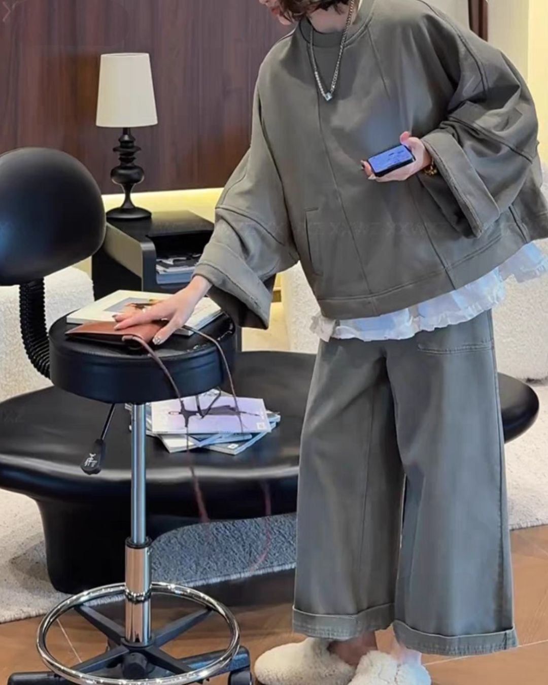 ショート丈デザインに、ゆったりとしたワイドシルエットが特徴。