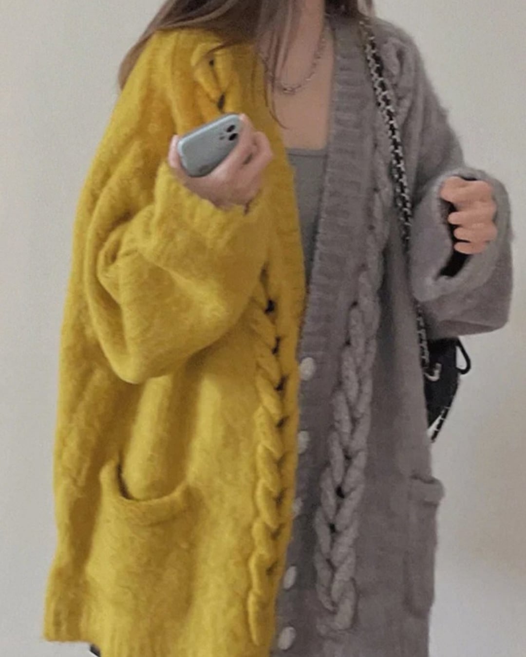 編み地が特徴の配色カラーBIGニットカーディガンは、リラックスした雰囲気を演出しつつ、コーディネートを一新してくれるアイテムです。秋冬のスタイルにぴったりで、カジュアルな日常使いからお出かけスタイルまで幅広くご利用いただけます!