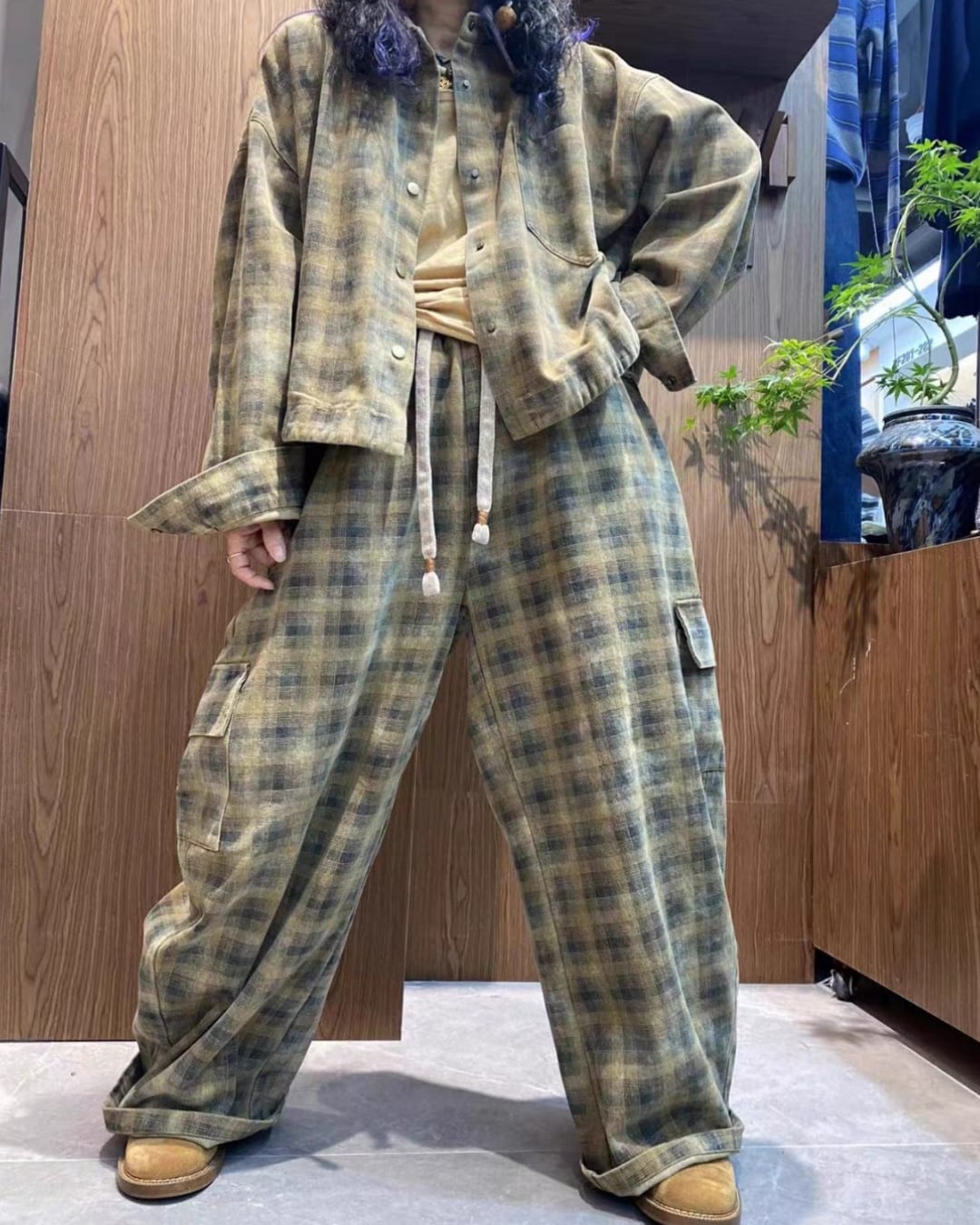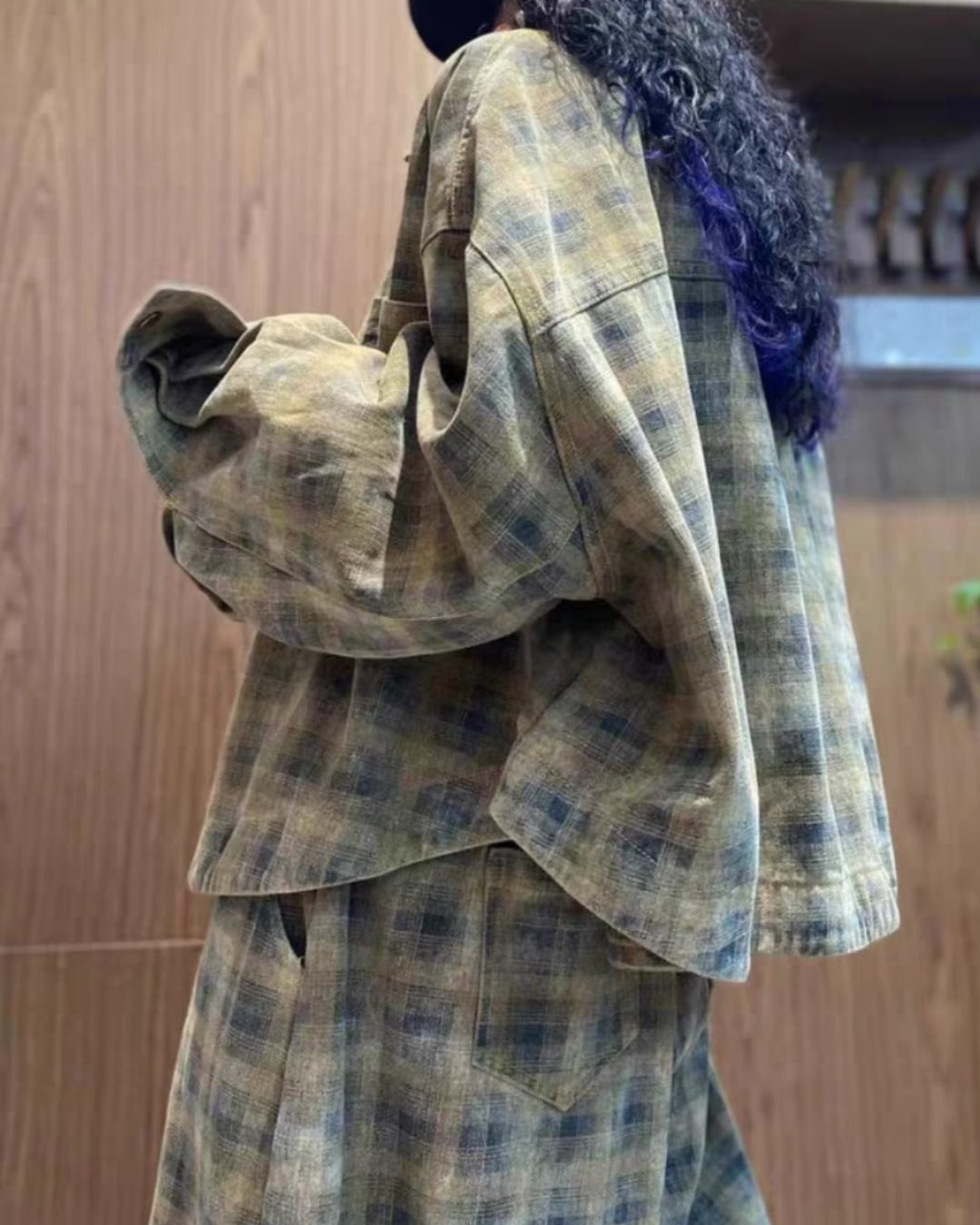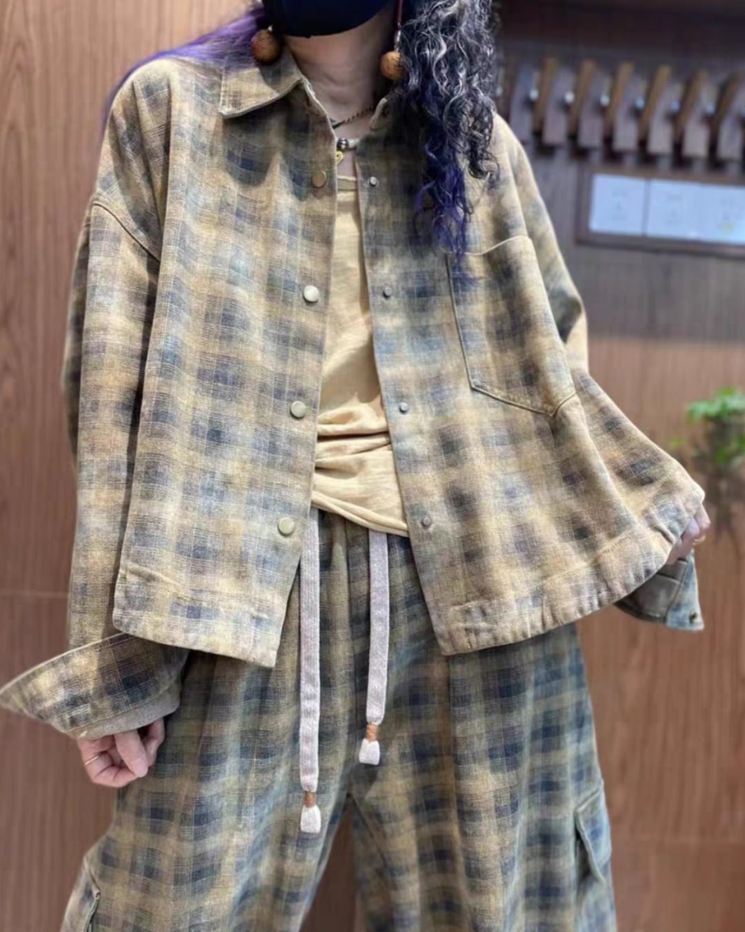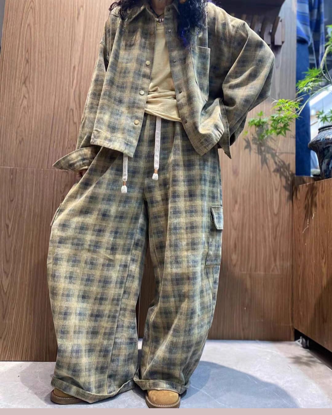 チェック柄のセットアップ。トレンド感を引き立てる一着!カジュアルだけと、かわいさもあるチェックでコーディネートを引き立ててくれるはず!