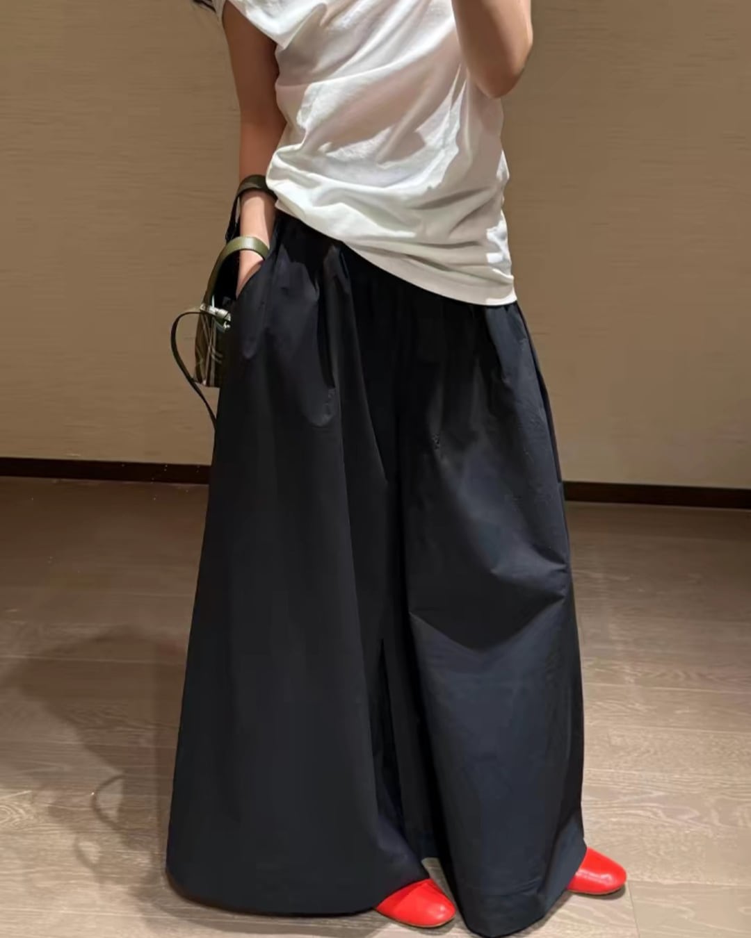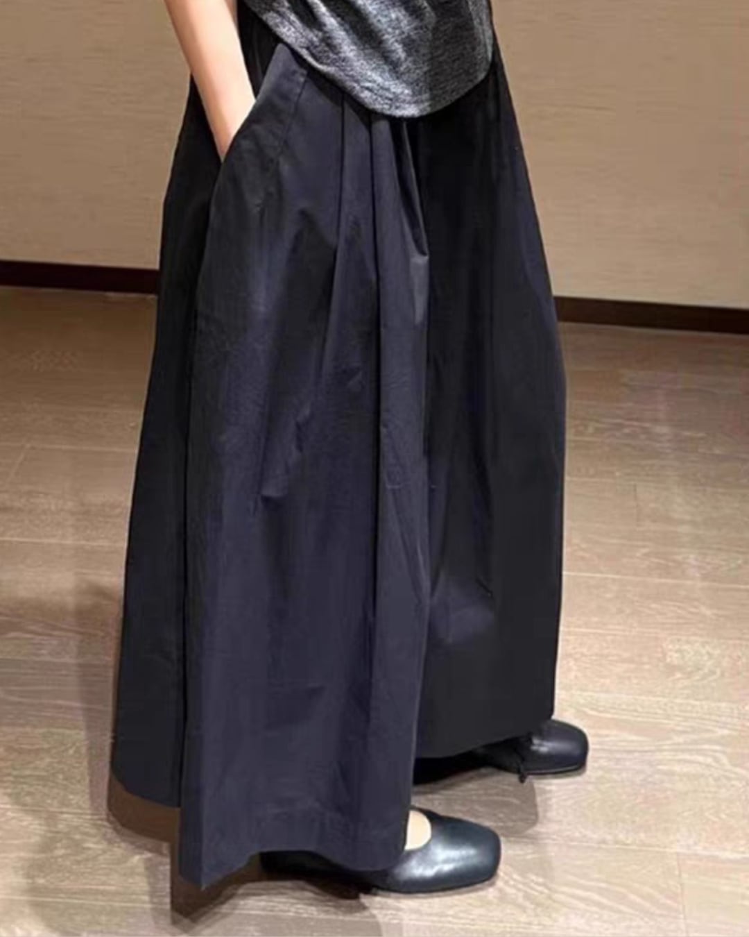 ゆったりとしたシルエットは動きやすさを実現し、リラックス感を与えます。様々なトップスとの相性も抜群で、カジュアルからフォーマルまで幅広く活躍します。夏は爽やかに、冬は暖かみのあるスタイルに仕上げることができます。