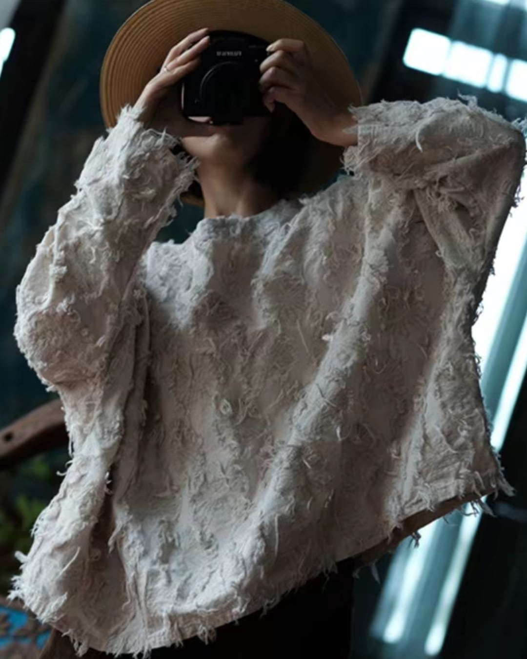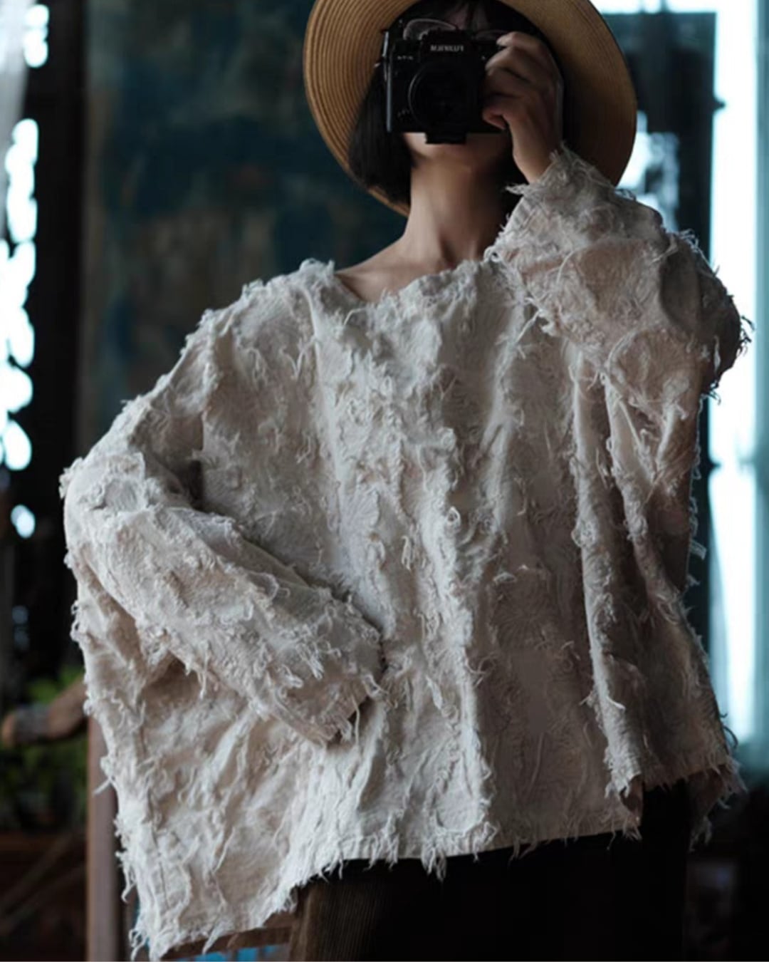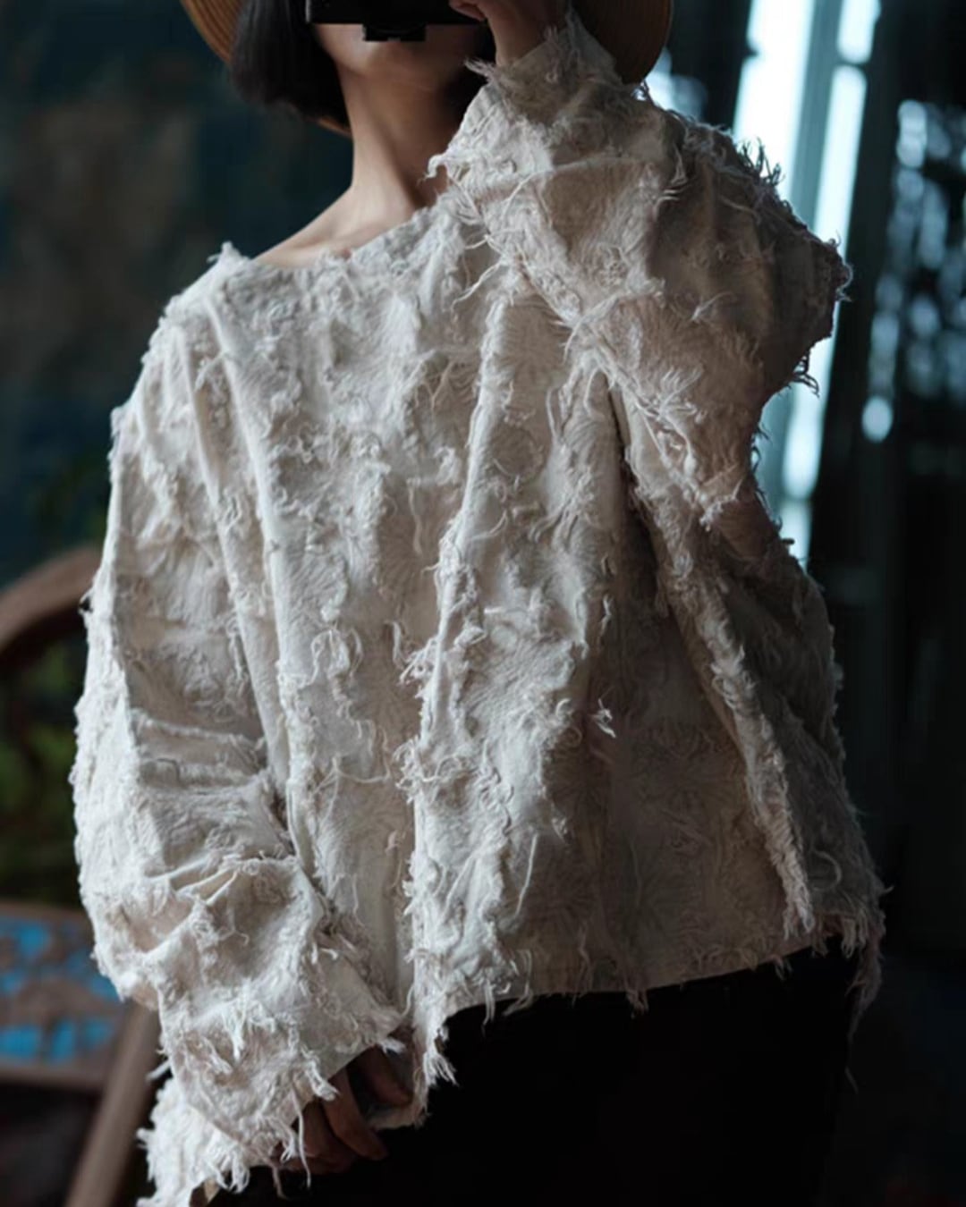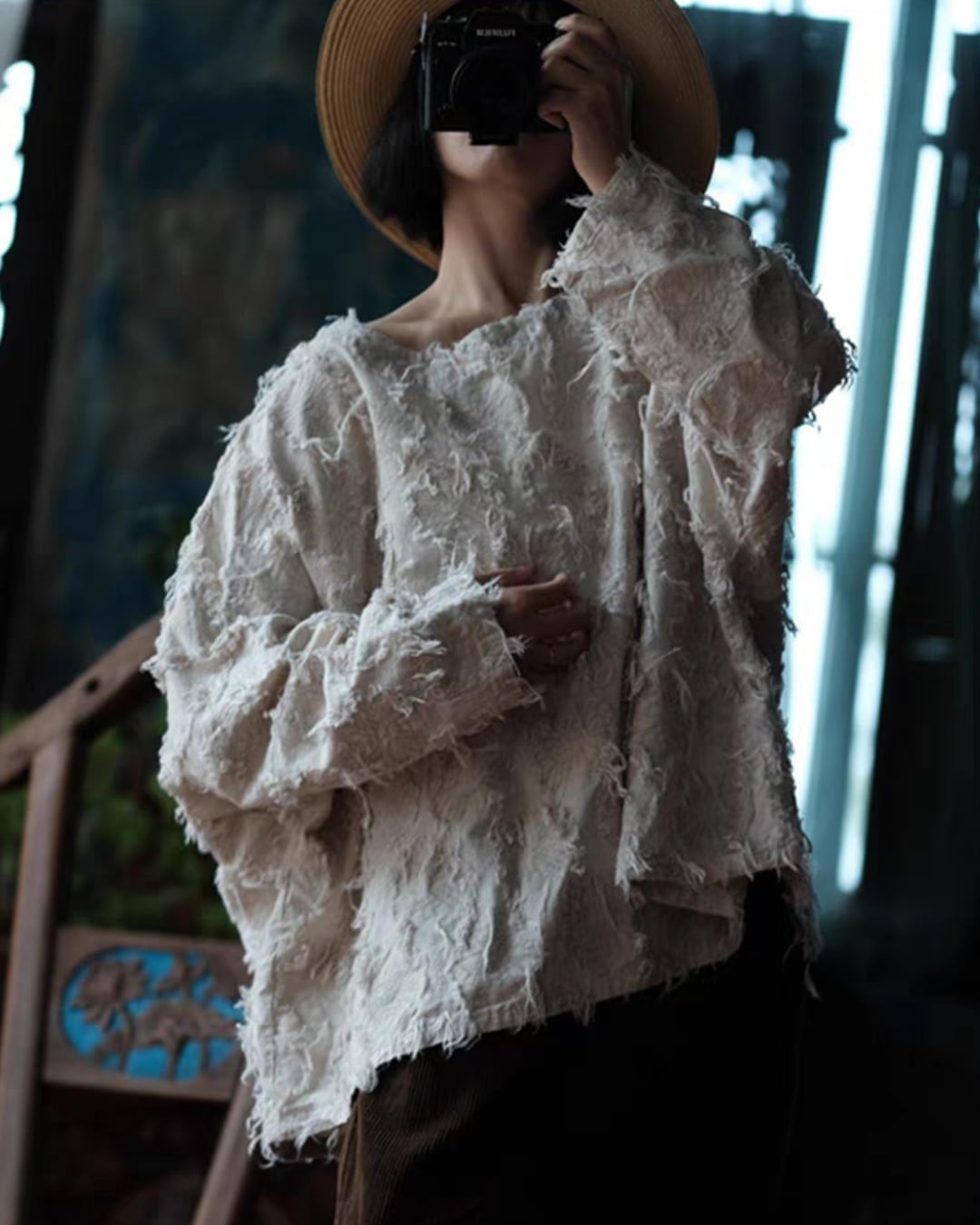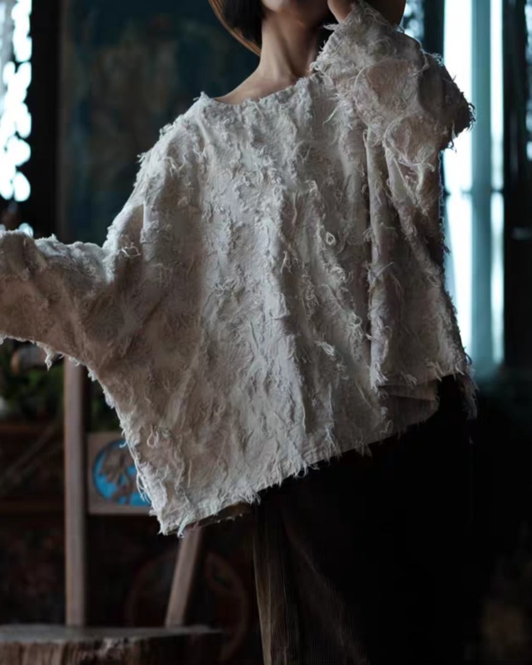 ダメージ加工ルーズワイドネックプルオーバー k0403