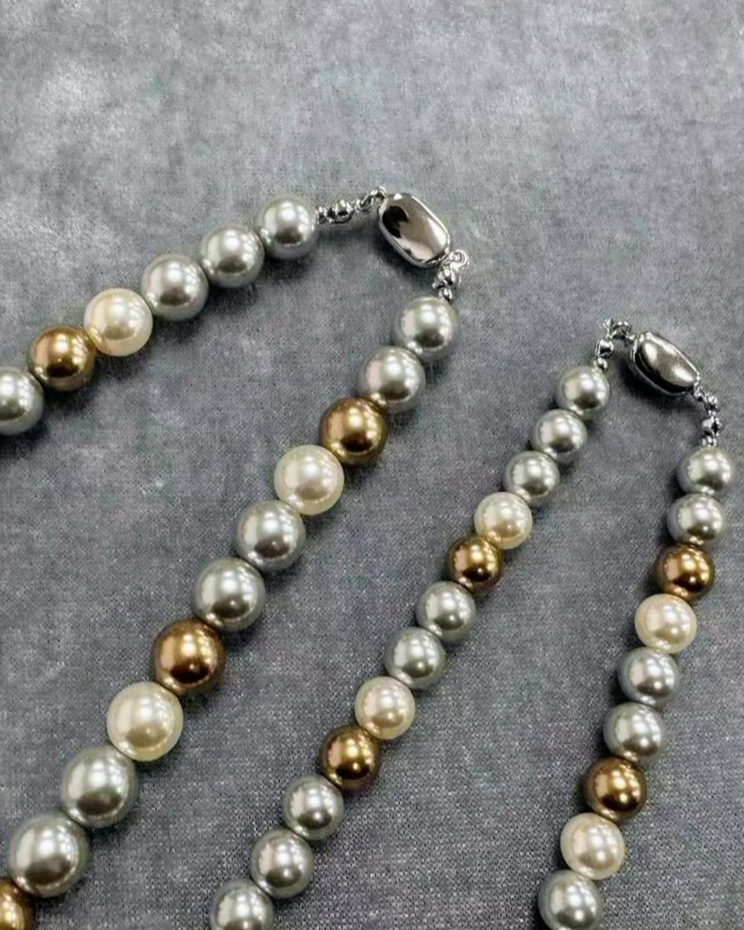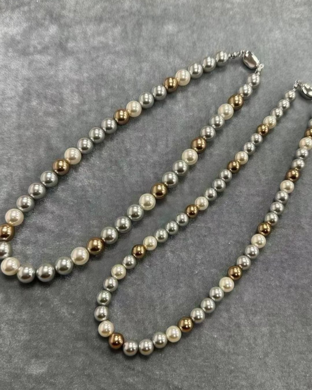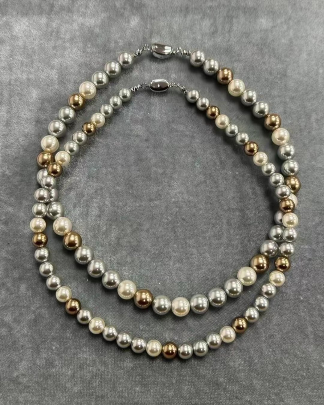 さまざまな色合いと形状の淡水パールを使用し、個性的でありながらも上品な印象を与えるネックレスです!