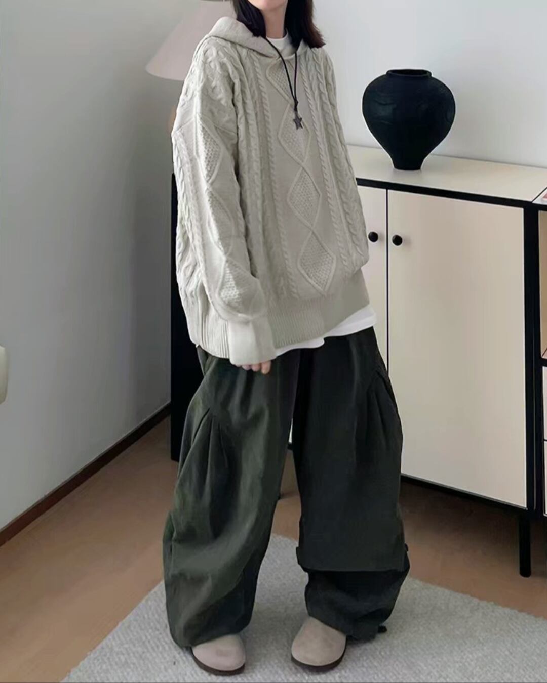 ゆったりプリーツワイドパンツ k0406